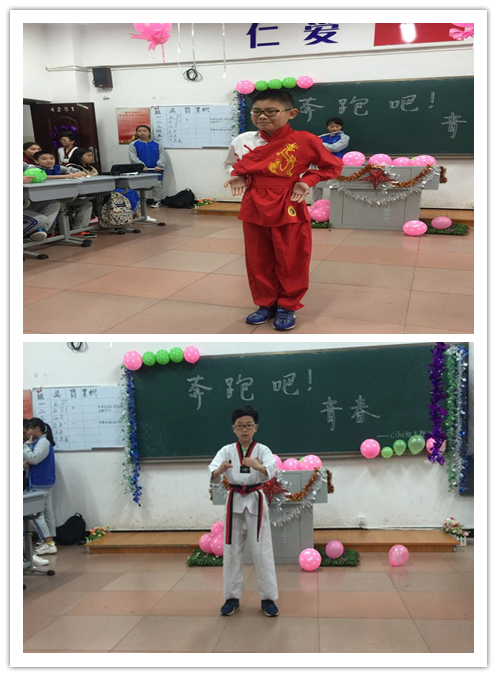 武术表演紧跟其上,毛乙棵同学的武术,秦琪同学的笛子演奏完美融合!小小的身体却有这飒爽英姿,让大家刮目相看!吴郅翔同学的跆拳道同样让人激情澎湃。