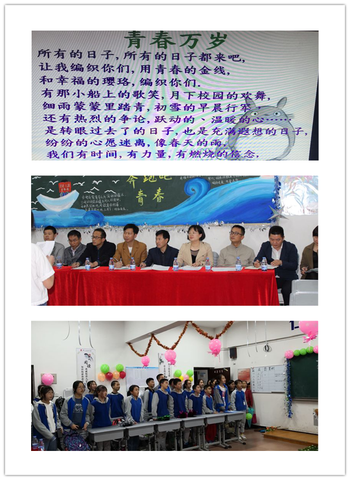 青春是什么?全班同学的集体朗诵《青春万岁》将班会推向了高潮!大家都充满激情,充满力量!青春万岁!各位参加本次班会的领导,老师和家长也被大家感染,所有人都十分专注!